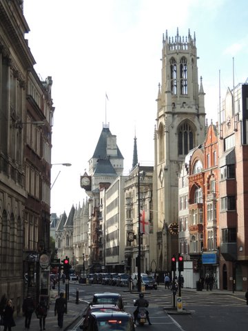 The bus sets off down Old Broad Street (a Roman street), crosses London Wall (no prizes for guessing what that’s on the line of) and takes a slight bend to the left, just before Turnbull & Asser’s shop – if you look to the right you’ll see Austin Friars, the reminder of a large Augustinian monastery on the site. Now we turn right into Threadneedle Street (a reference to either the Company of Needlemakers or the Merchant Taylors) with the Royal Exchange on the left and the Bank of England  (1788) ahead on the right. The Royal Exchange is the Victorian rebuilding of the trade centre that has flourished here since Tudor times. This is a great place to get off on another day for exploration on foot – the George & Vulture tavern, the Monument, the Bank of England Museum and London Bridge are all close by.