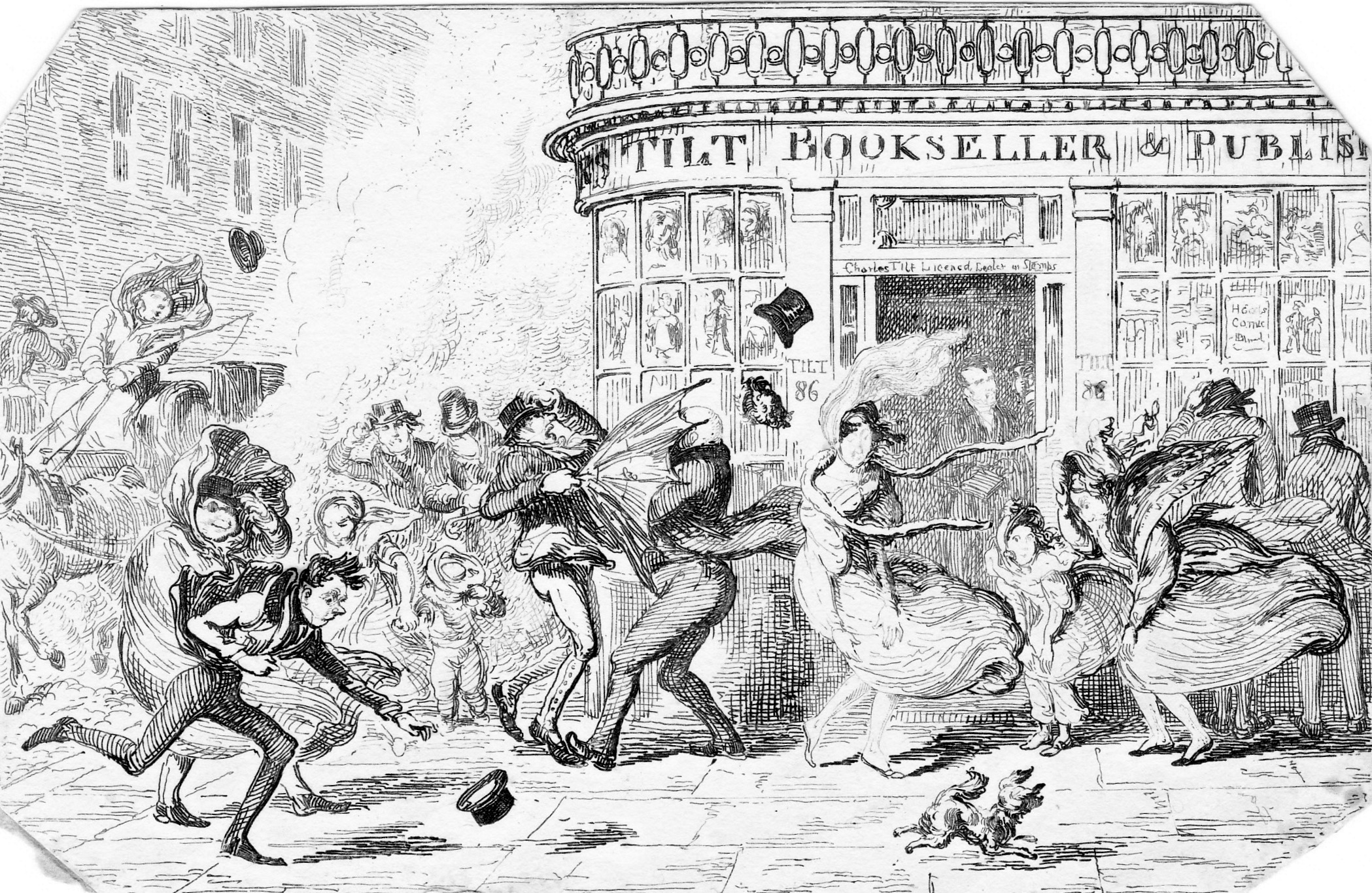 In a recent post I used two of Cruickshank’s delightful monthly views of London to illustrate the state of the streets. When I looked at March I found it showed the effects of March gales on pedestrians passing the doors of Tilt, Bookseller & Publisher, which made me dig further into my collection to see what I had on access to books.