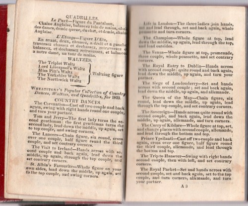 But even though it contains no fascinating insights into the daily life of a lady in 1822 it is a lovely item in its own right, and it does contain two handwritten recipes and a mass of other useful printed material including “New Songs and Melodies”, instructions for country dances and quadrilles, the price of stamps and “Enigmas, Charades and Rebuses.”