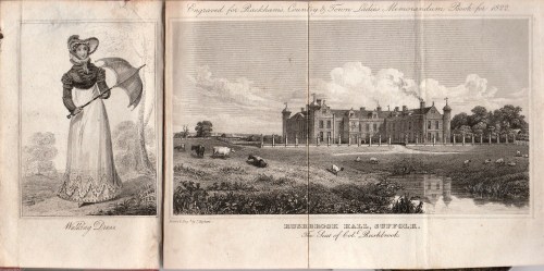 The frontispiece has a fashion plate and a view of a fine country house in Suffolk