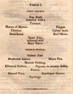 For March, Mr MacDonald informs us, beef, mutton, veal “house-lamb” and pork are the meats in season. The poultry and game are turkeys, fowls, capons, chicken, duckling, tame rabbits and pigeons. (I’m not clear what the difference between a fowl and a chicken is.) A wide range of fish is in season including oysters, flounders, eels, roach, crab, turbot and mackarel [sic]. The vegetables he lists are mainly roots and the cabbage family including borecole – what we now call Brussel Sprouts – plus mushrooms, tansy, parsley, fennel and celery. Lettuce and cucumbers are listed – presumably grown under glass – and a wide range of herbs.