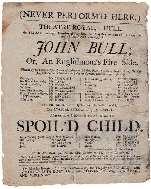 The farce, The Spoil’d Child was a popular piece that crops up in several of the big London theatres.