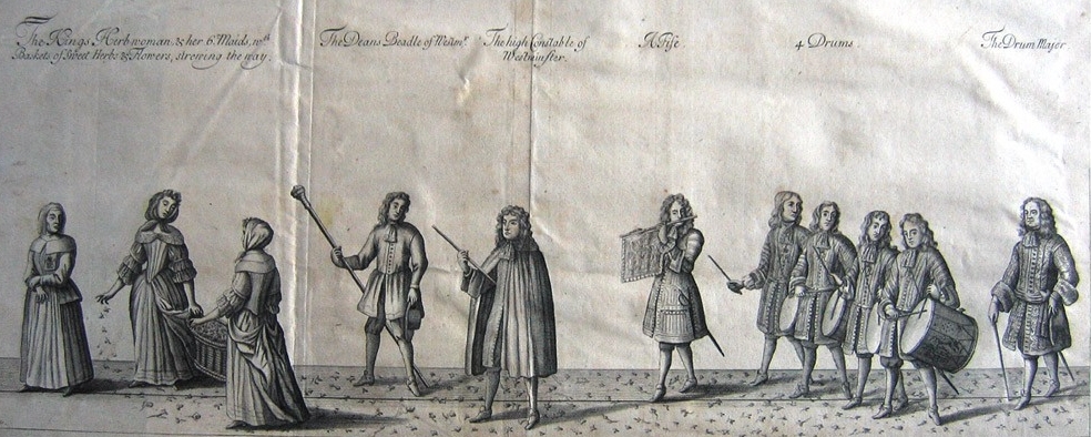 James, the younger brother of Charles II, was crowned on 23rd April 1685. Because he was a Roman Catholic he had been anointed and crowned the previous day during a Catholic ceremony in the chapel at Westminster Palace and there was no communion service as part of the Abbey ceremony.