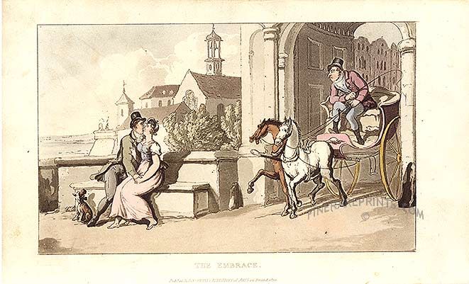It is easy to think of the Regency as romantic – duels, elopements, dashing bucks and gorgeous gowns. But the slang of the period soon dispels that, as do the some of the images of the time, unlike Rowlandson’s The Embrace above. (I do love how he always includes a dog).