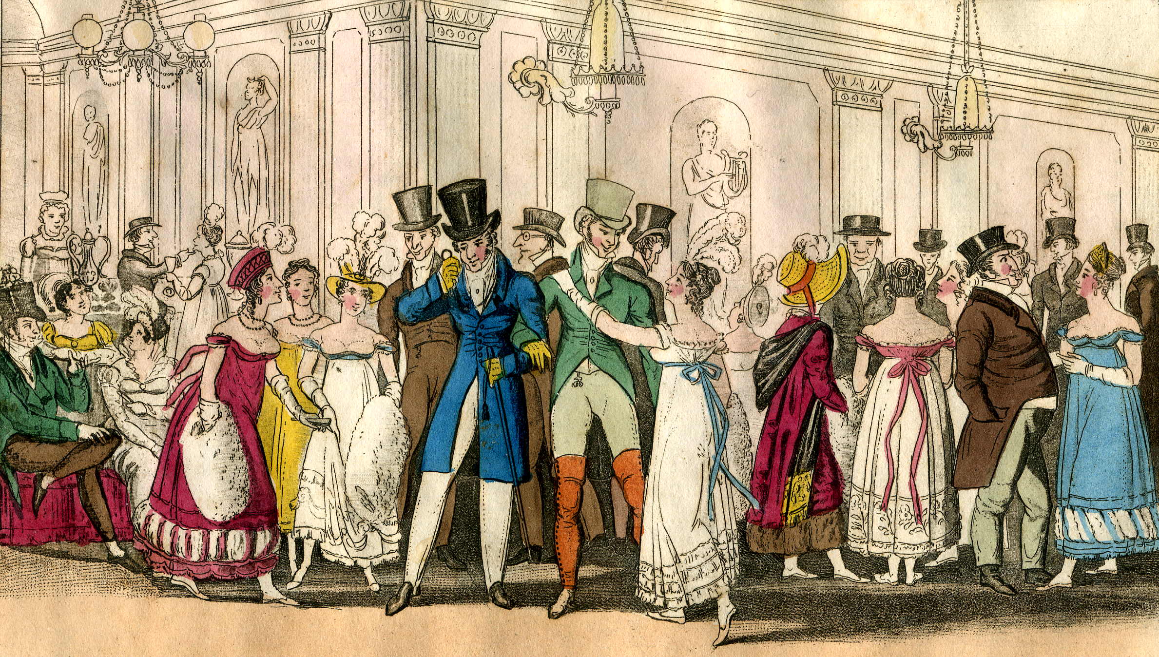 “Drury Lane Theatre – on Saturday night a most crowded and brilliant assembly were attracted to the representation of a new tragedy by Mrs. Wilmot, a Lady of Fashion, which had been got up with great splendour of decoration and in favour of which there was the most sanguine anticipation. It is a story of the Saxon era of our nation…There were abundant materials for dramatic interest and effect… The plot was pregnant with those high sentiments of honour and gallantry which distinguished our Saxon ancestors… The materials were, in short, ample for the production of a play of great interest but the Lady has rather produced a dramatic poem than a regular drama.” By the third act, despite Mr Kean in the leading role, the audience was getting restless and “the whole of the fifth act passed with the incessant impatience and condemnation.” The unfortunate Mrs Wilmot presumably retired discomforted and the piece was never heard again. The print below shows the fashionable crowd outside the boxes at Drury Lane – and the dashing young ladies hoping to attract one of the dandies on the strut there.