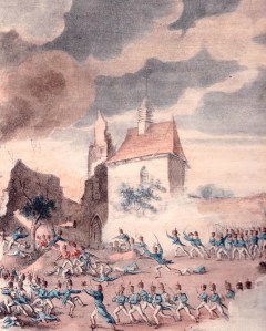 Thursday 15th was, of course, the date set for the Duchess of Richmond’s famous ball, shown in an entertaining, but particularly inaccurate picture at the top of this post. The Duke, perhaps maintaining his pretense of insouciance, assured her it could go ahead, although by the evening rumours were already circulating around Brussels. Some officers were already leaving the city to go to their troops, others were coming in, unaware as yet of the increasing certainty that Napoleon was on the move. In the event the news hit the revelers at some time around 11pm. Lord Uxbridge announced, “You gentlemen who have engaged partners, had better finish your dance, and get to your quarters as soon as you can.” In full dress uniforms and evening slippers the young officers headed south.