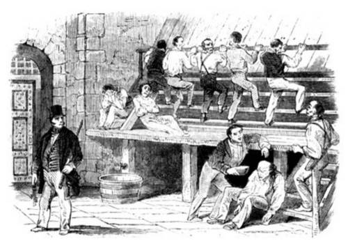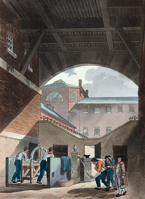 For criminals, prisons were not places of punishment until later in the 19th century when the reduction in hangings and floggings meant that new, less physical, punishments such as a term in prison, were devised. In Georgian times they were holding places for prisoners awaiting trial or punishment – hanging, flogging, transportation, time in the stocks or pillory. They were chaotic, filthy and rife with disease and a prisoner’s degree of comfort, if such a thing was to be had, depended on the ‘garnish’ or bribes they could give to the gaolers, just as happened in the Fleet.