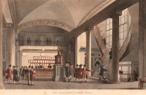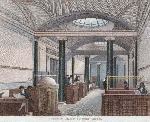 That would involve walking back along Pall Mall a little to number 52, the home of the British Institution. Otherwise known as Pall Mall Picture Galleries or the British Gallery, it was founded in 1805 and was considered elitist and conservative by many artists. It was disbanded in 1867. The print from Ackermann’s Repository (1805) shows artists copying the works on display. Interestingly, four of the seven artists are women.