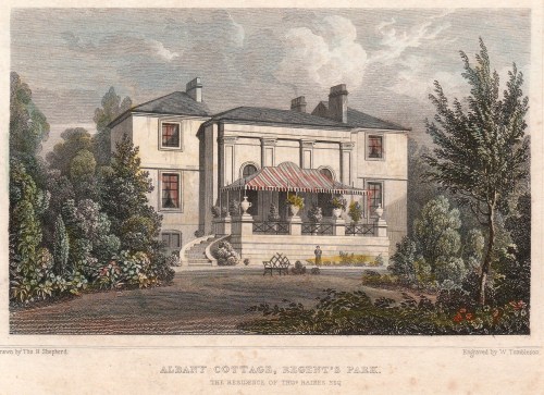 The Zoological Society of London was founded in 1826 and its collection of animals was opened in 1828 on the site at the north of Regent’s Park. There were 30,000 visitors in the first seven months. The contents of the Rooyal Menagerie from Windsor were added in 1830 and the animals from the Tower of London were moved there in 1832-4. Mr Herriott’s visitors would have been able to view monkeys, bears, llamas, zebras, kangaroos, emus, turtles, an Indian elephant, an alligator, huge snakes, Tommy the chimpanzee, four giraffes and visit the camel house (shown in the print of 1835).